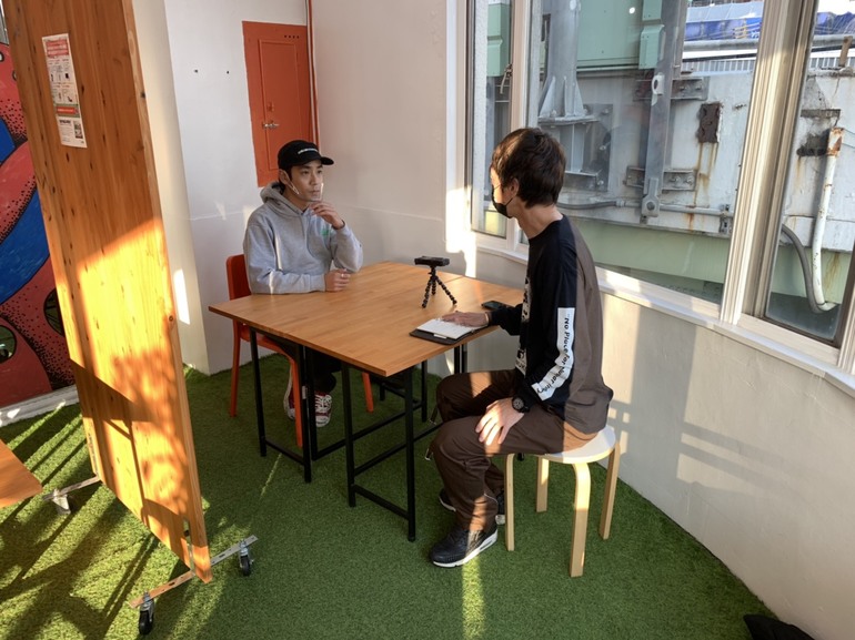 そしてGOOD PLACEにも出演してくれた愛はズボーンの儀間くん、これもMVつながりのLOU DOG・SUNSHINE DUBのサトボーイが取材に応じてくれました。