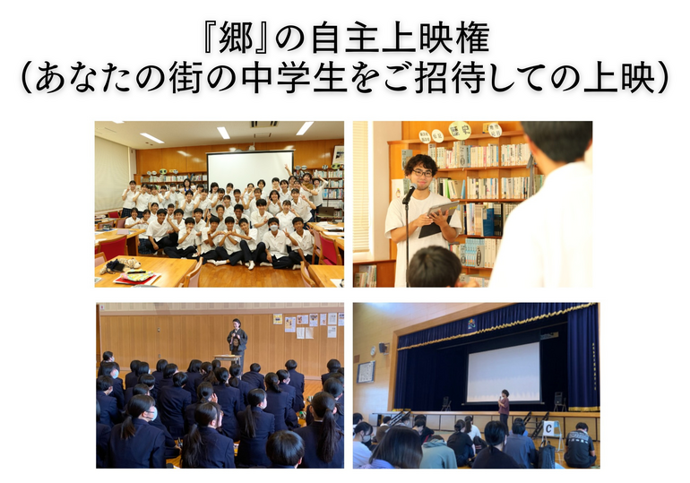このクラウドファンディングで集まった力は、上映館の獲得・公開の継続・学校連携へと直接つながります。映画『郷』を広げていきましょう!!!みなさまのご支援をどうぞよろしくお願い致します。