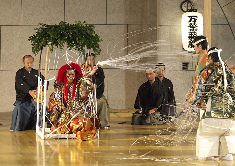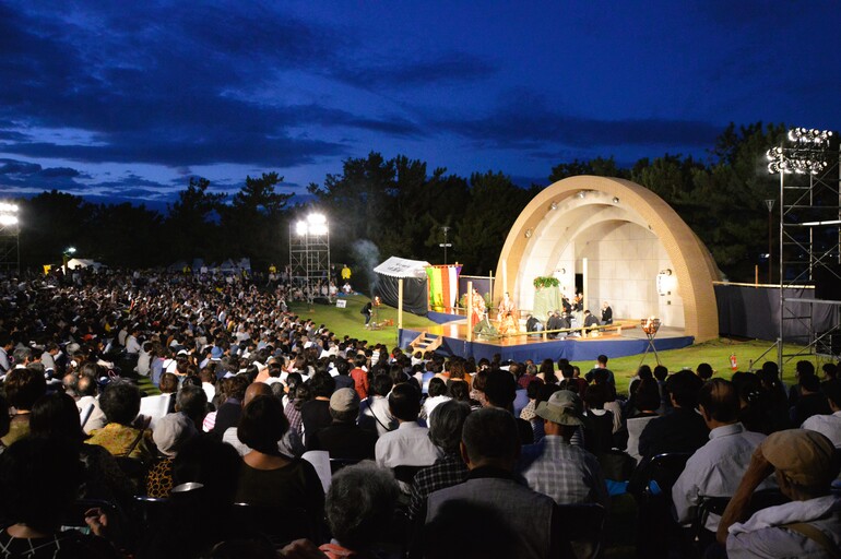年1回または2年に1回のペースで、片男波海水浴場に特設ステージを作り能を舞っておられます。HABi-Wakaura施設内でも能の上映を企画中。