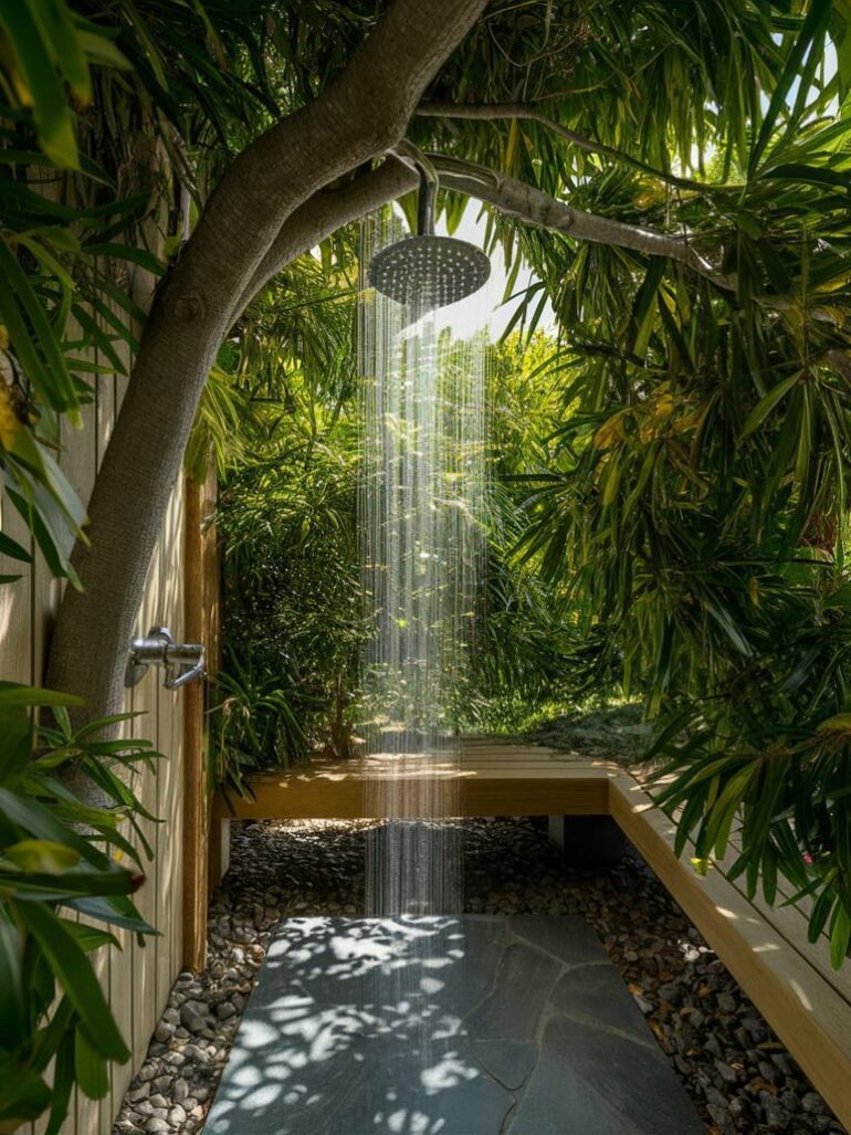 お風呂を作るとなると、かなりの資金が必要になるので、資金の集まりが十分でないときは、シャワールームに変更するかもしれません。シャワールームは、イメージ写真のような、地域のイメージを損なわず、 Room/Hanare-Hinokiのような、現代的にアレンジした日本テイストと、自然が共生するような広めのスペースを作ります。シャワールームの場合、2つ作りたいですが、資金の集まり具合では1つになるかもしれません。
