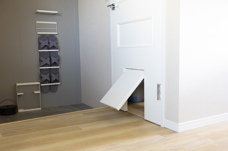 HABi-Wakaura Room/Sakura with P トイレはペットと一緒に利用できるよう一般的な広さの2倍確保。ペットが自由に出入りできる扉付。