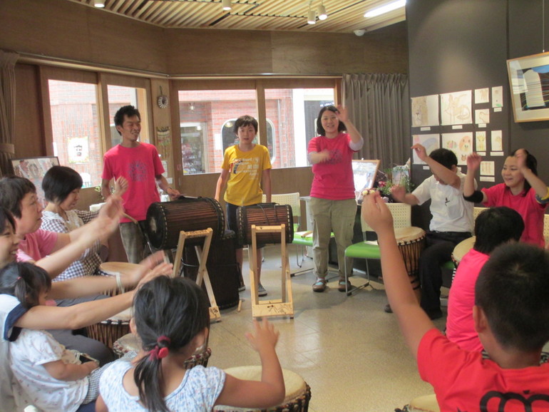 2日目は折り染めアート、午後からはジャンベ演奏でした。