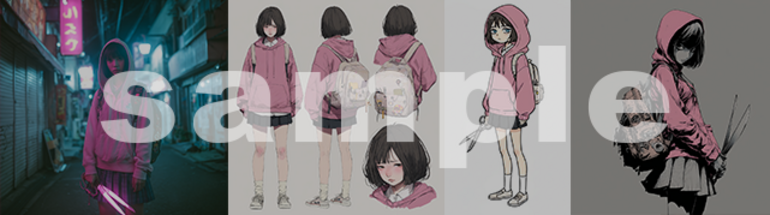 企画時に作成したAIイメージ画像(キャラクター設定、世界観資料など)と、監督のイメージスケッチをセットにした、画像集をPDFファイルでお送りします。