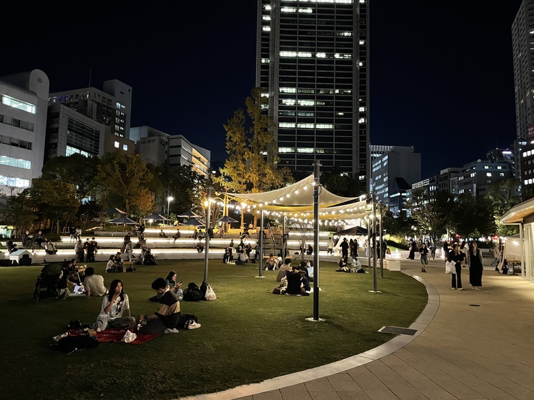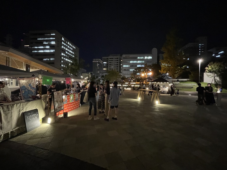 平日の夜にも関わらず、多くの(しかしちょうどいい人口密度くらいの)方がお越しくださり、秋の訪れを感じる気持ち良い気候を楽しんでいる姿は、「人がいる風景」の良さを改めて実感します。