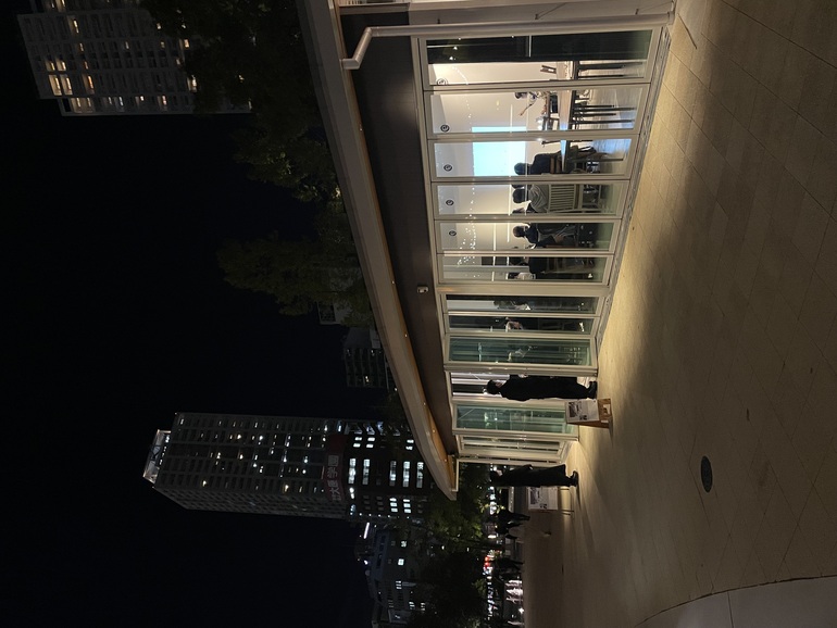 扉を開けての講演会は、会社帰りの方々が立ち止まって少しだけ聞いていくという、"学びそそられる風景"がみられて、うれしい気持ちになります。