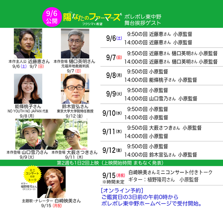 9/6(土)9:50〜の回、14:00〜の回に主人公・近藤恵さん×小原監督