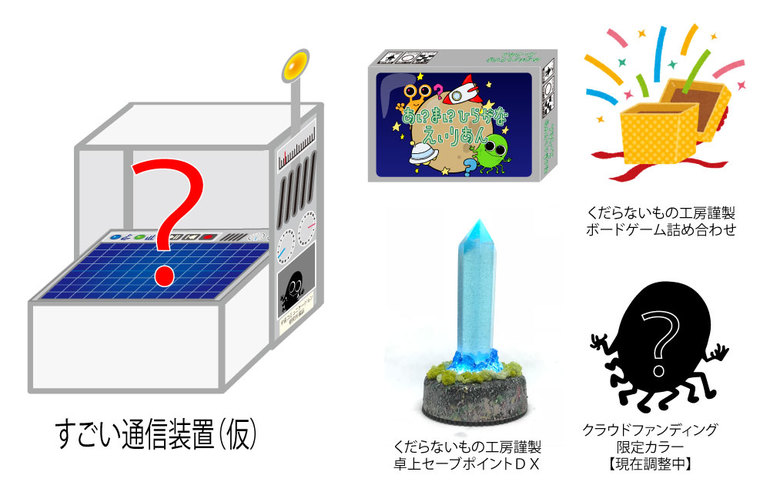 ・通信装置DX(通常は箱を裏返して通信装置にしますが、より世界観を楽しんでいただけるような、無駄にこだわりの世界に一つだけの通信装置を限定1個製作いたします。ピカピカ光ったりします。かっこいいです。みんなに自慢しましょう。)