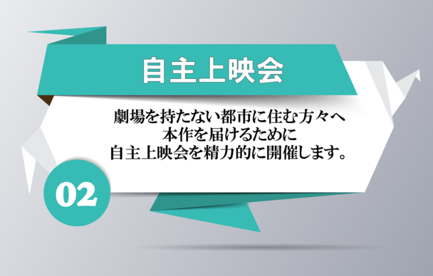 完成後の3つの展開「劇場公開」「自主上映」「海外展開」