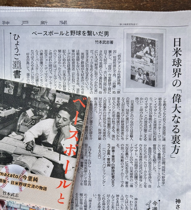 先日12月13日(土)付け神戸新聞朝刊書評欄に『ベースボールと野球を繋いだ男』を掲載いただきました。