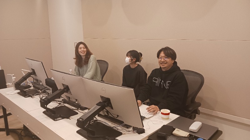 「イマーシブ・イマーシブ」、昨日はMA作業の日でした!サウンドデザイン/ミックスの安藤さん、助手の坪内さん、音響効果の金森さん、そして安村監督と、安藤さんたちの会社セブンゲートさんで作業しました!!