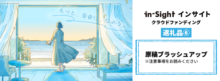 当クラウドファンディングは 「All-in」形式(プロダクションファンディング)で行われます。目標額の達成の可否に関わらず「in-Sight インサイト」のプロジェクトは弊社の自己資金によって進行され、お申込みいただいた返礼品の発送も行われます。不測の事態によってプロジェクトの進行、および返礼品の発送時期が遅れる可能性もありますが、最新情報は随時アップデート、および在野社公式Webサイトにてお伝えいたします。