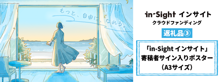 「in-Sight インサイト」寄稿者、およびコンセプトアートを担当されたせきやよいさんのサイン(いずれか1名)を入れたA3サイズポスターをプレゼントします。