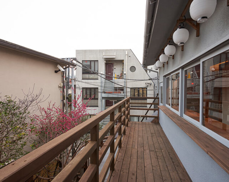 ギャラリーの外にはバルコニーが付いているので、日差しや風を心地よく感じることができます。夜には提灯もついて、なんとも素敵な雰囲気(〃ω〃)