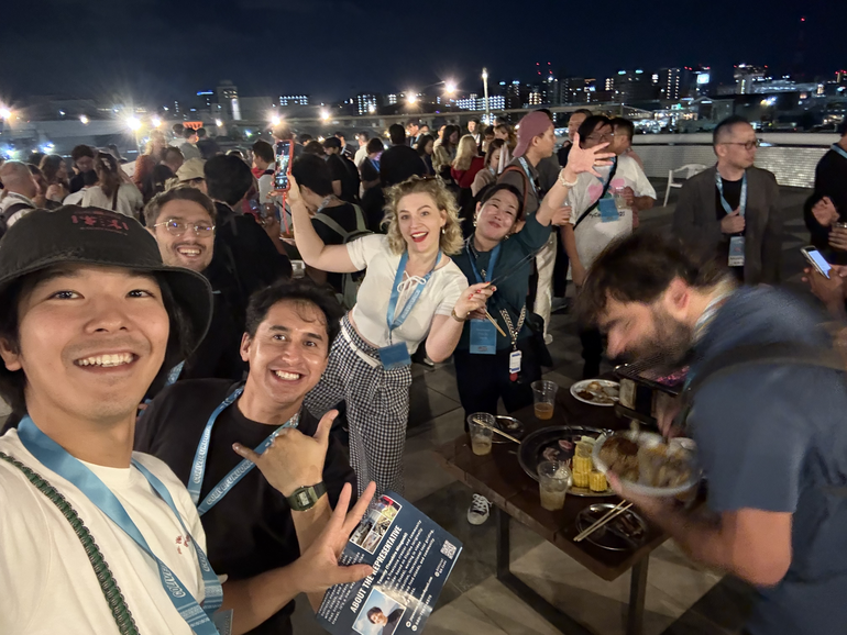 40カ国以上、数百人の「デジタルノマド」がこのサミットに参加するために福岡に訪れているところに参加し、デジタルノマドたちの生の声を聞き、彼らのコミュニティに僕自身が入っていき、プロジェクトのチラシを持って江田島をアピールしました。