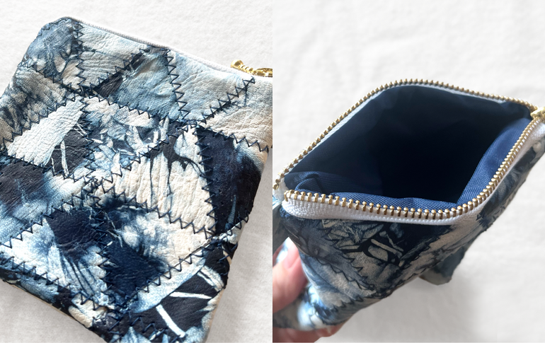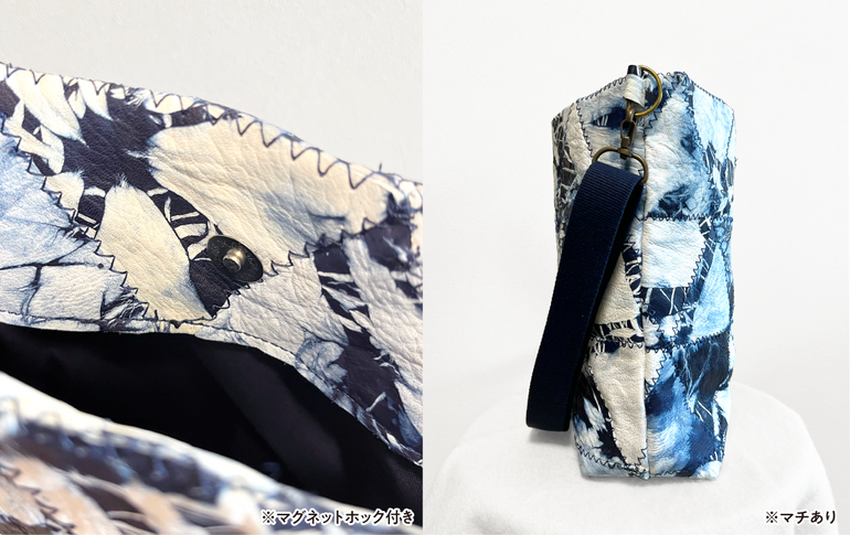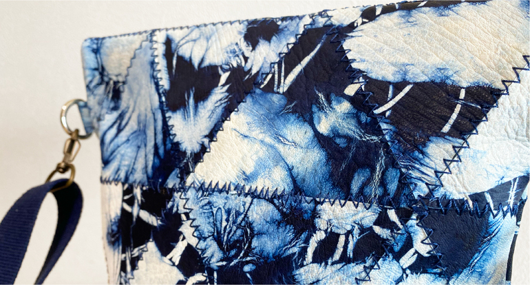 ◎表裏面/鹿革×藍染絞り パッチワーク縫い