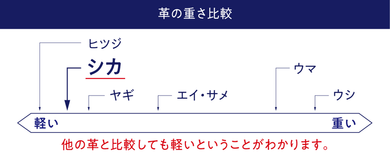 また、鹿革は牛革・豚革といった革と比べ高い伸縮性を持っています。
