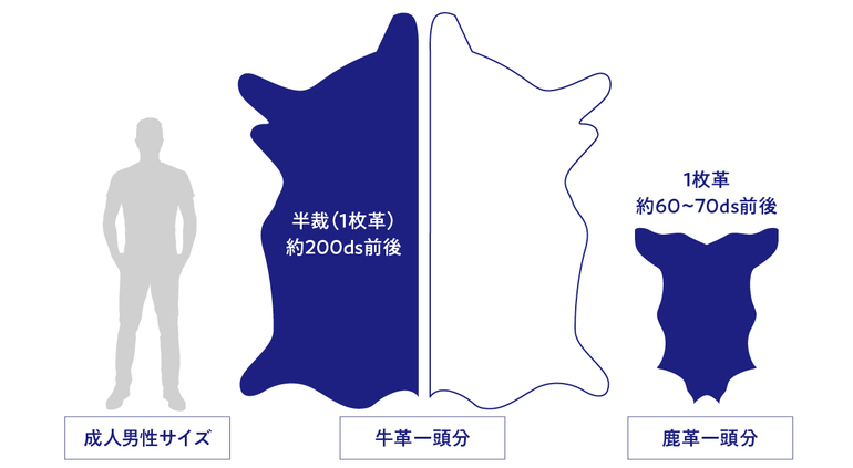 一頭から取れる革のサイズは約1/4になるため、貴重であるということがいえます。