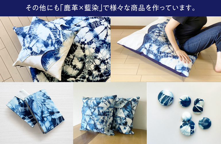 人間の都合で大量に廃棄されている「鹿革」を、伝統ある染色技術の「藍染」で商品に生まれ変わらせ、たくさんの方にお届けしたいと思い、このプロジェクトを立ち上げました。