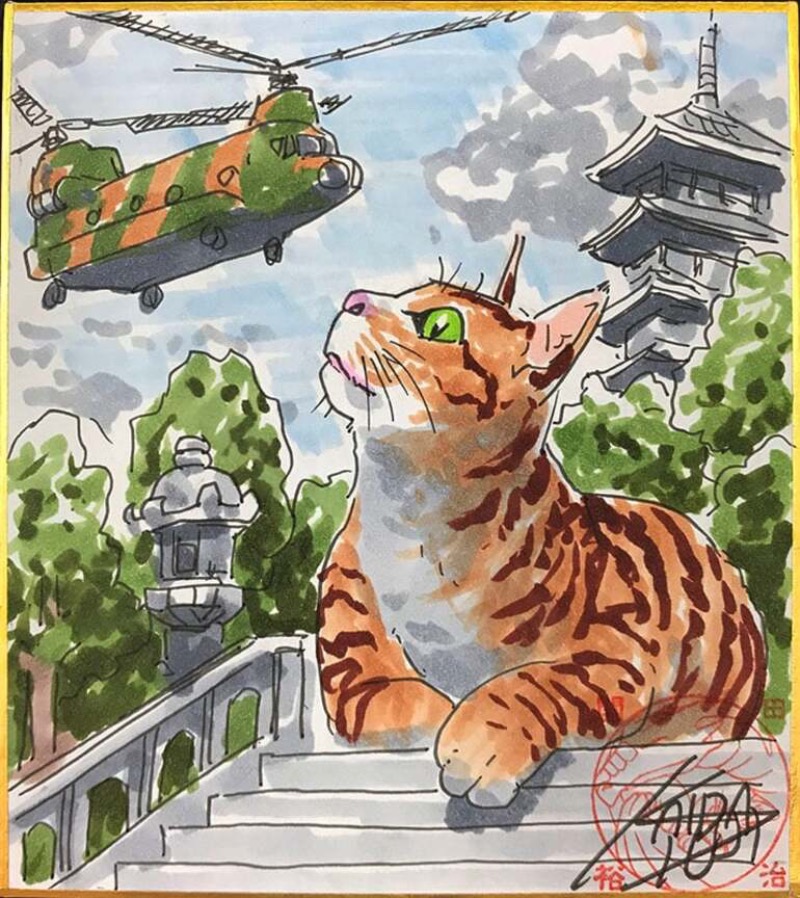 350万突破のストレッチゴールは、開田裕治描き下ろしネコ怪獣色紙(フルサイズ)です。以前のミニ色紙(13.6cm×12.1cm)より一回り大きいフルサイズ(27.3cm×24.2cm)です。図柄は以下の3つ。A、B、Cともに限定3枚で、各50000万円になります。