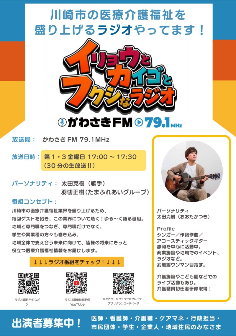 かわさきFM イリョウとカイゴとフクシなラジオ 毎月第1・3金曜17時放送