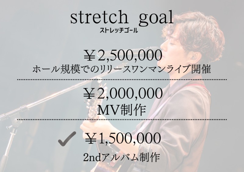 目標金額を超えた場合は、ストレッチゴールとしてミュージックビデオの制作などを予定しています!