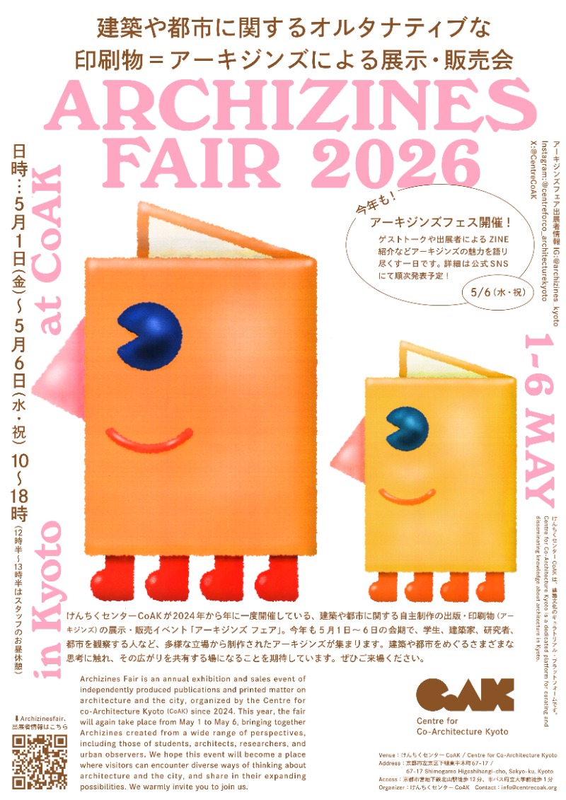 建築や都市に関 する自主制作の出版・印刷物が多数並ぶ貴重な機会となっております。ゴールデンウィーク期間中に京都へお越しの際は、ぜひお立ち寄りください!