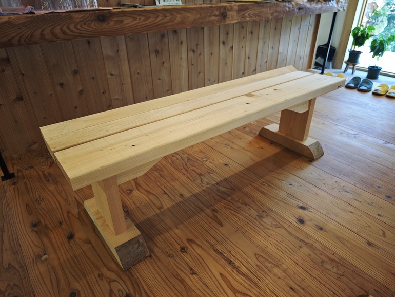 【ひと息つける時間を支える手づくりのベンチ試作品(2〜3人掛け用)】