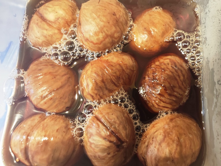 【やっと完成!今回、15個からスタートして渋皮が破れずにきれいにできたのは9個でした】