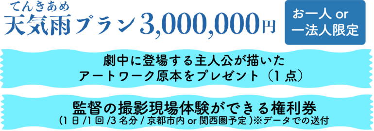 ○天気雨(てんきあめ)プラン 3,000,000円 お一人or一法人限定
