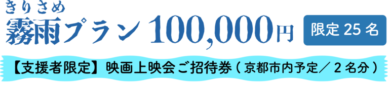 京都市内の映画館を借りて、完成した映画を2026年4月に初お披露目予定です。上映会当日には監督と関係者によるトークショー、関係者/支援者を含めた記念写真撮影が行われます。2名様分のペアチケットになりますので、ぜひご家族やお友達をお誘い合わせの上ご来場ください!