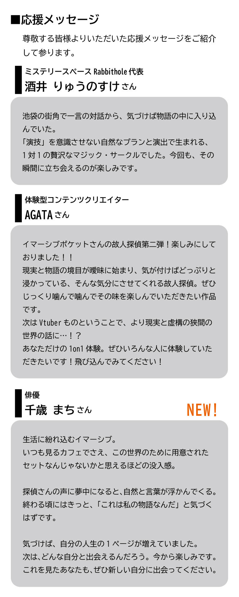 「ポケットに入る物語体験」をコンセプトにするイマーシブシアターのレーベルです。 #故人探偵 #イマポケ