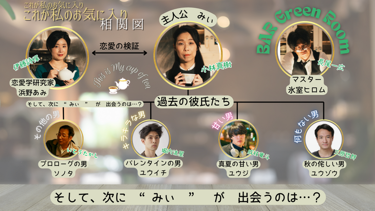 主人公「みぃ」(小林真樹)と、助演「浜野あみ」の二人芝居、または、「過去の彼氏たち」との二人芝居。