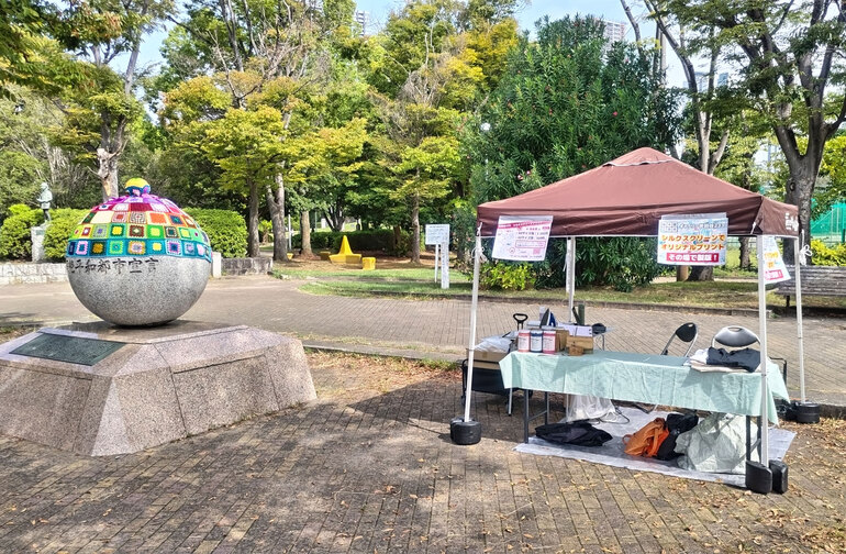 ちなみに地元に定着しているイベントのようで会場は大賑わい、世田谷233ブースでも10名を超える方々にシルクプリントを体験していただくことができました。ご来店いただいたみなさんありがとうございました。監督にはブースのお手伝いもしていただいて感謝。