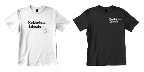A (白地)カノコユリのイラスト+「Koshikishima Islands」の文字