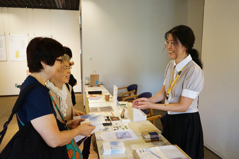 この展示スタンドは吉成虎維氏作。日本語、英語ともに本文ページも見ていただきました。