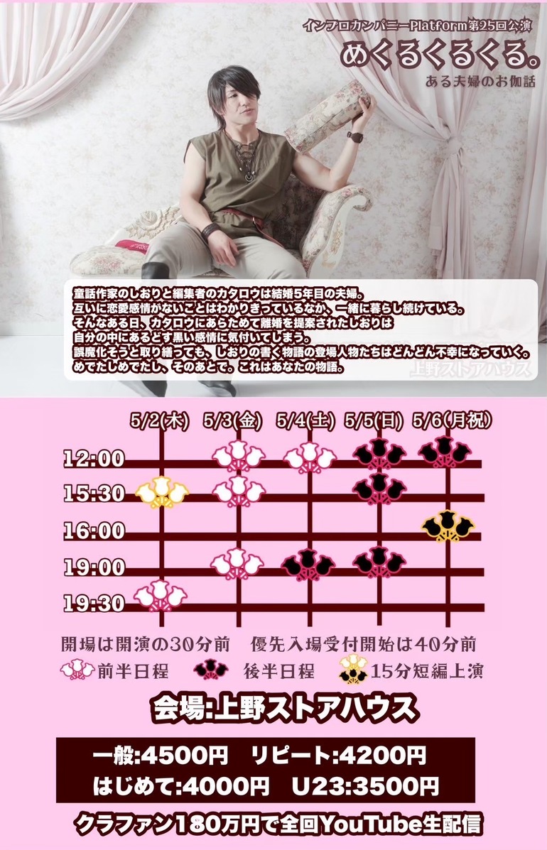 新しいPlatform公演「めくるくるくる。ある夫婦のお伽話」が明日より公演開始となります。