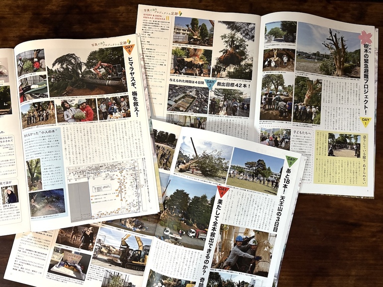 このプロジェクトは、あくまでも第三の選択肢。反対の声をあげても叶えられず、伐採を待つしかなかった樹木に、最後に差し伸べた手に過ぎません。樹木にとっては大きな負担を伴うものだったのと同じように、人間にとっても大きな負担と痛みを伴うものでした。それでも、そんなときに差し伸べられたあたたかい手を、想いを、私たちは決して忘れません。この記録冊子をつくる過程は改めてその想いに触れ、たくさんの花束をいただいた気持ちになるものでした。感謝に堪えません。本当に、ありがとうございます。