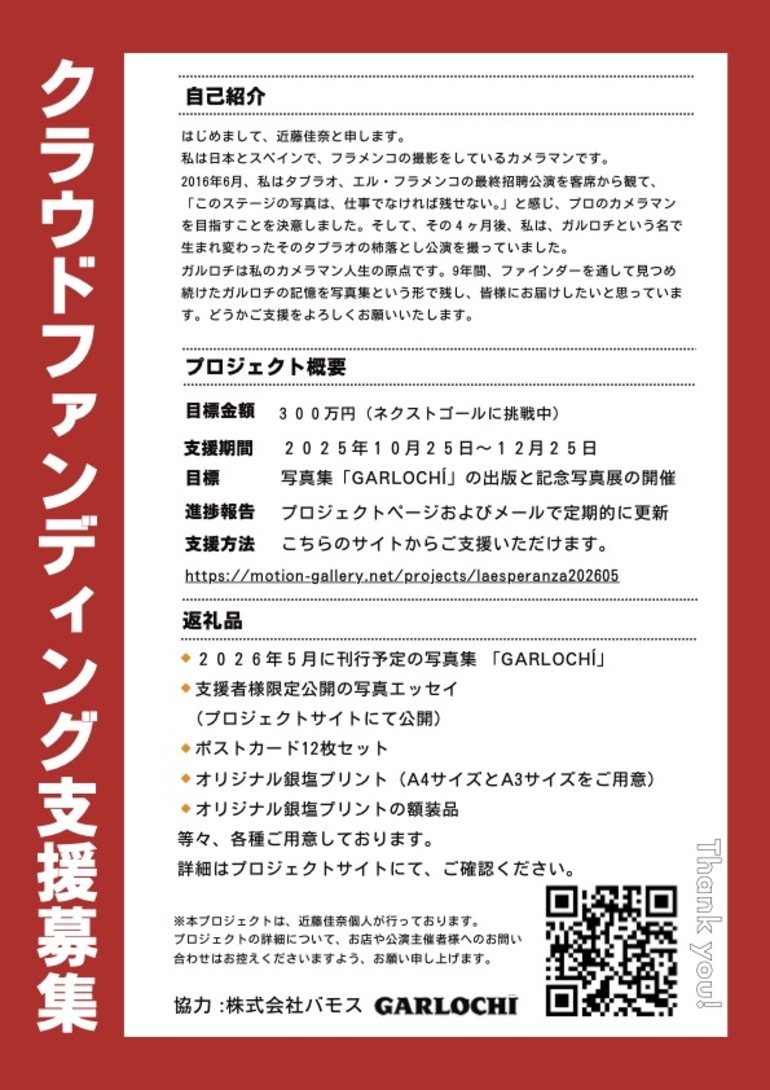 さて、現在進行中のクラウドファンディング”写真集「GARLOCHÍ」出版プロジェクト”も終了まで残すところあと20日間となりました。