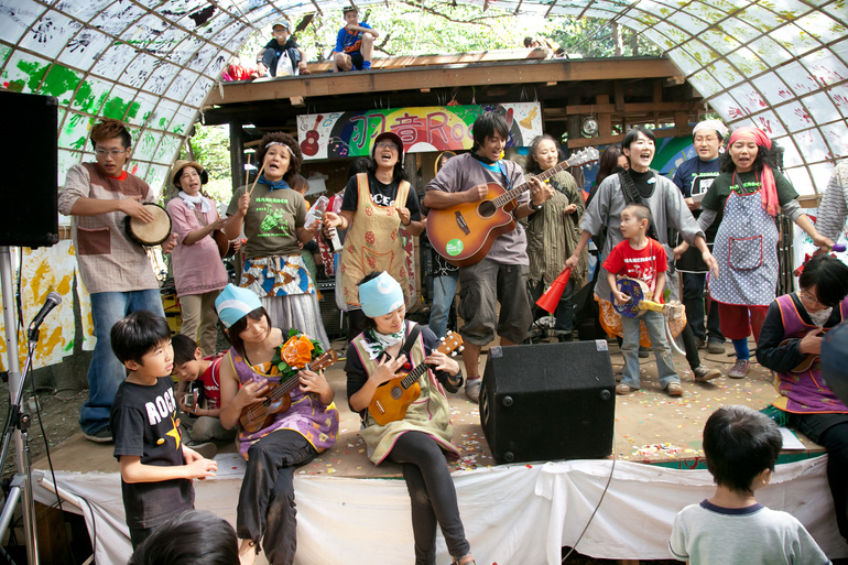 3.11をきっかけに有志ママたちで結成された「羽根木割烹着ーず」とプレーリーダー・たかのコラボ