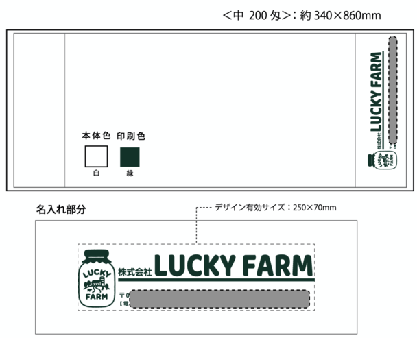 さらには、お一人ずつに社員証を発行致します。お名前が入っているのはもちろん、何やらヒミツの仕掛けもあるとか…?さらに、株式会社ラッキーファームのロゴ入りタオルとロゴ入りボールペンも作ります(いずれも粗品ではありますが…)。これがラッキーファーム社従業員必携の三点セットです!