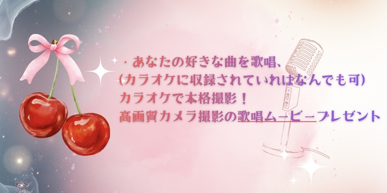 ※数曲あげていただきカラオケ機に収録されている曲目をこちらで問い合わせ、選ばせていただきます。もし該当曲が無かった場合再相談させていただきます。