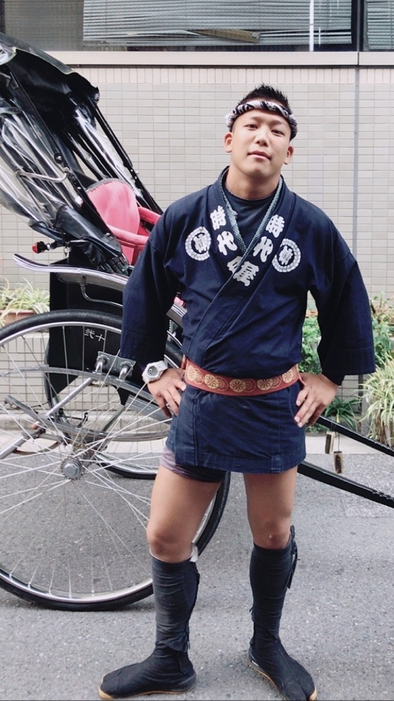 益田拓摩が引く人力車に乗ることができます。場所は浅草です。