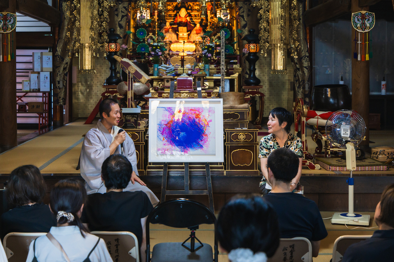 会場では、上賀茂神社に奉納された屏風絵《Kamigamojinja》と掛軸《愛の光珠》を特別に公開し、現在制作中のド...
