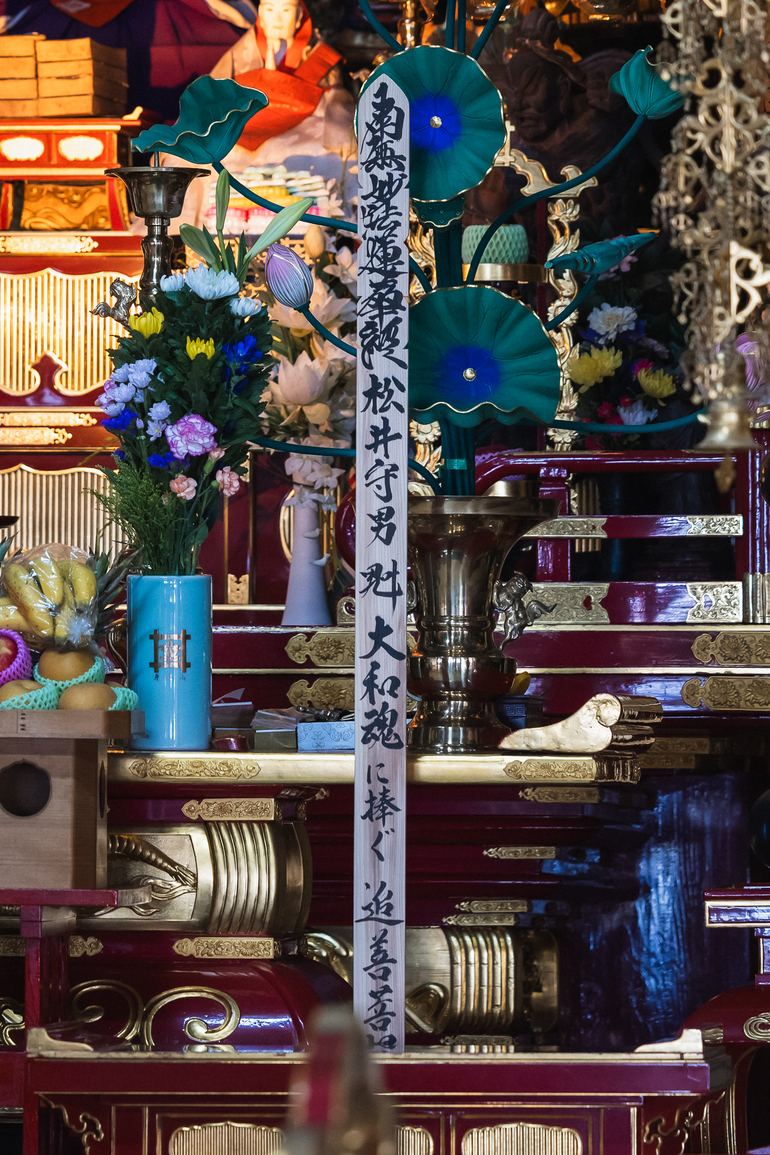 当日はまず、谷川寛敬副住職により松井画伯のご供養、そして映画の完成と成功を祈るご祈願をいただきました。