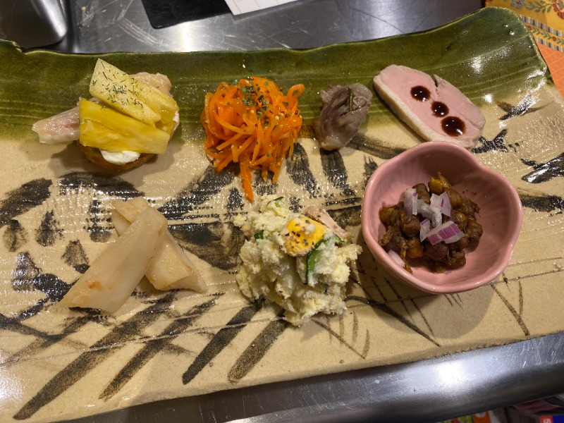 日々季節の食材を選びながら、ウキウキと新メニューを考え、たのしく仕込んでおりまして、定番メニューとざっくり2-3日で入れ替わっていくその時々のおばんざいをたのしんで頂けます。