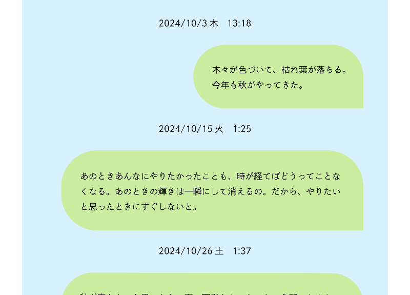 メモをし始めたとき、部活かWebライターか、どちらを続けるのか選択しなければいけなかった。当時の私はWebライターを続けることを選択した。だけど、部活を辞めてからいつも通り部活に行く仲間を見て、誰もいない通学路を1人で帰って。周りのみんなに応援されていたのに、自分のした選択を後悔してしまっていた。自分で選択したはずなのに、みんなのことをすごく羨ましく思ってしまった。そんなときに、自分のメモを見返した。ライターを続けると決心したときの自分のメモ。そうか、私はこういう風に考えていたからライターを続けようと思ったのか。そのときから、だんだんと自分の選択を受け入れ、自分の選んだ選択こそが正解だ、と思えるようになった。正解も不正解もないのかもしれないけれど。新しくメモに記録し、それを見返す度に自分の中からやる気が出てきた、ライターをする意味を見出せてきた。私は文章を書くことが好きだ。自分の中で、メモを取って自分を振り返ることの重要性に気づけてから、継続的に文を記録して、見返している。