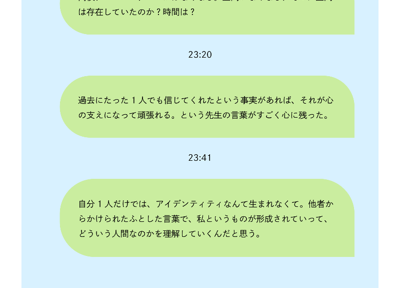 美大に入学してから、講評でのアウトプットが毎月ありました。テーマが自由だったので自分の中から探さなくてはなりませんでした。だから、自分の今まで書いてきたメモを振り返る必要があったのです。
