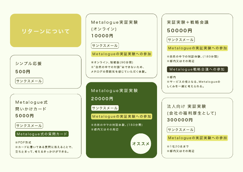 「Metalogue」は、あなたの人生の意味を、あなた自身で再発明するためのプロジェクトです。どうか、その第一歩に伴走していただけないでしょうか。
