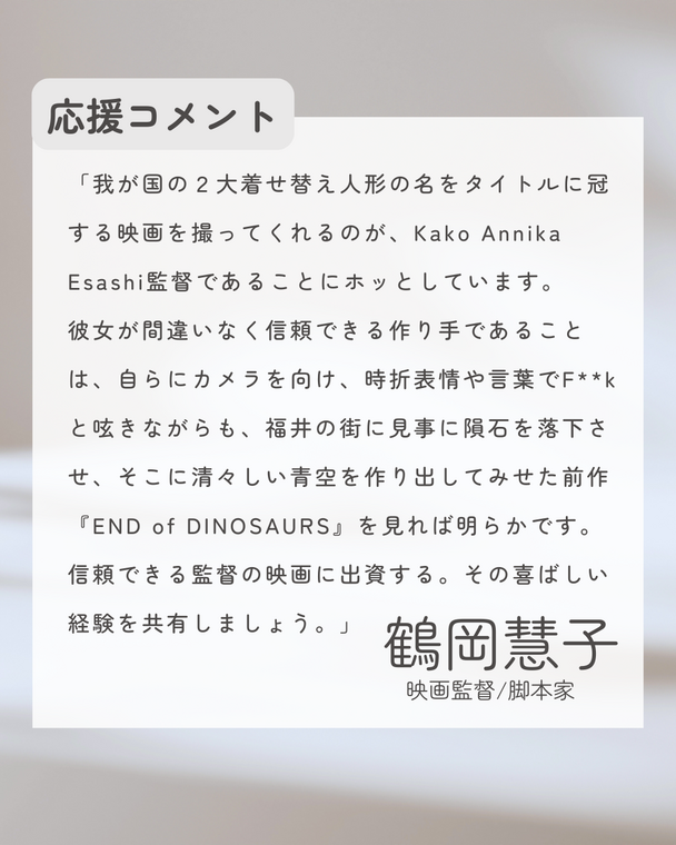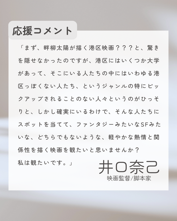 どうか、私たちと一緒に、未来の映画づくりを支えていただけませんか?応援、よろしくお願いいたします。