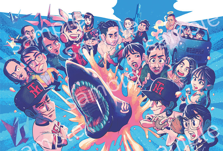 昨年のイラスト参加招待作品(温泉シャーク、まっぱだか、ラストホール、野球どアホウ未亡人、スーパーミキンコリニスタ、ゆりに首ったけ、そこにあるもの、猫と私と、もう1人のネコ)
